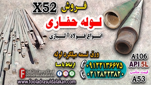 فروش لوله حفاری-لوله فولادی حفاری-لوله x52-لوله a53-لوله a106-لوله آلیاژی ((قیمت مناسب))
